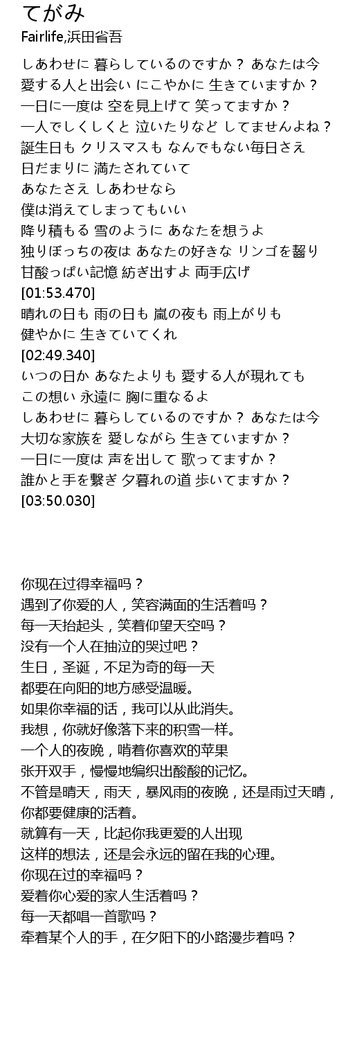 | [03:12.120] | しあわせに 暮らしているのですか? あなたは今 |