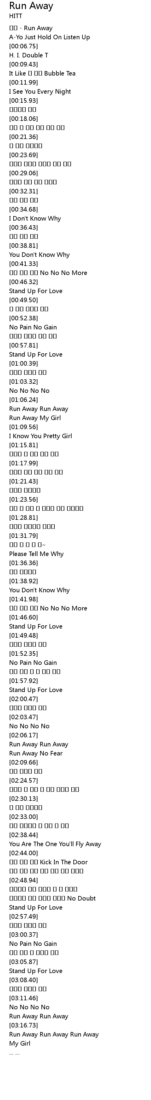 | [00:00.62] | 히트 - Run Away |