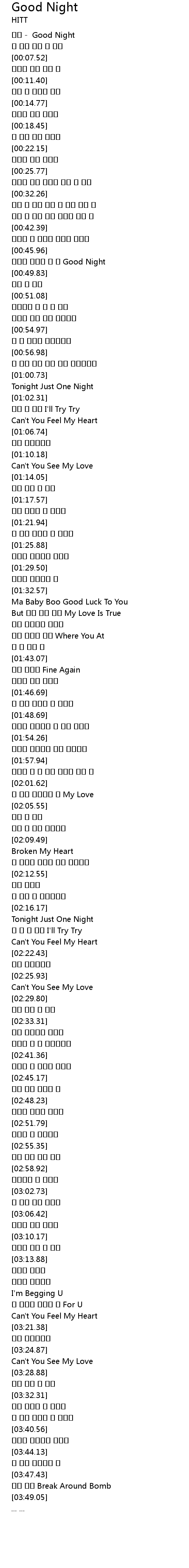 | [00:00.58] | 히트 - Good Night |