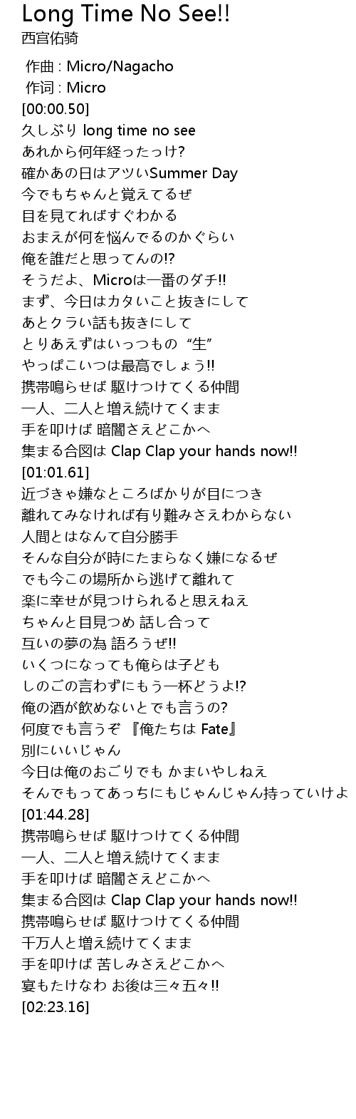 | [01:34.11] | 何度でも言うぞ 『俺たちは Fate』 |