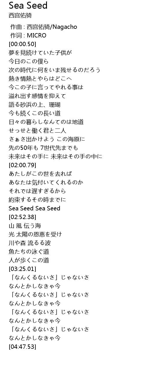 | [02:41.31] | Sea Seed Sea Seed |