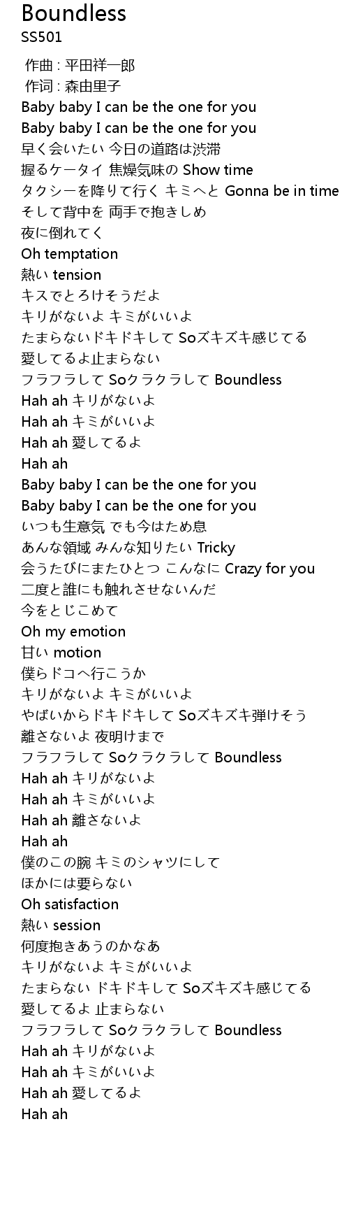 | [02:29.440] | フラフラして Soクラクラして Boundless |