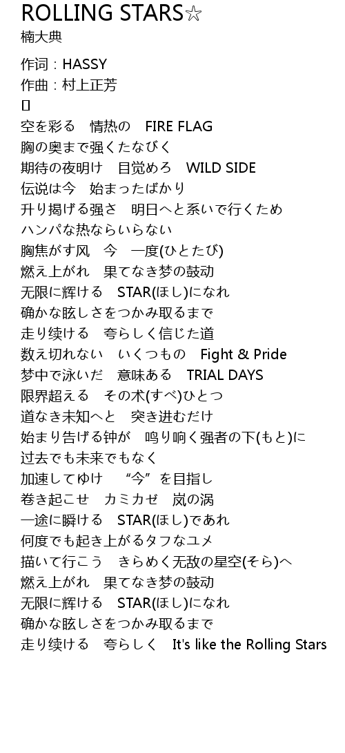 | 走り续ける 夸らしく It's like the Rolling Stars |