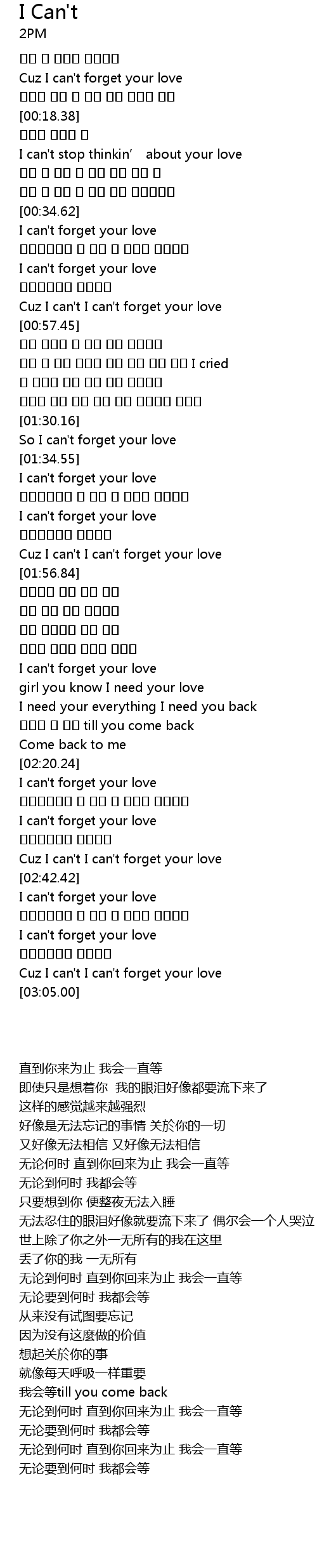 | [01:53.54] | Cuz I can' t I can' t forget your love |