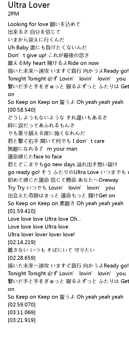 | [01:28.020] | go ready go! Ultra Love oh! |