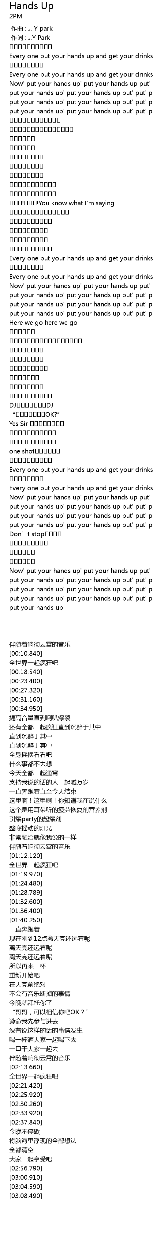 | [00:01.00] | 作词 : J.Y Park |