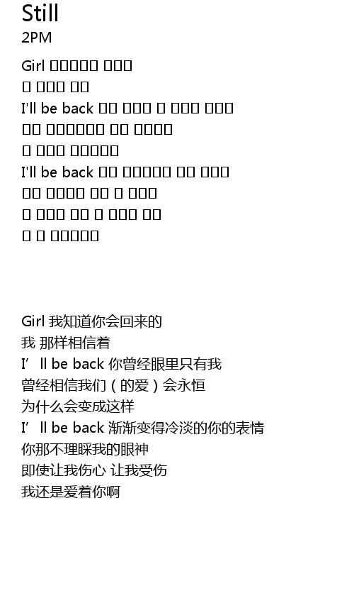| [00:17.94] | I'll be back 나만 바라볼 줄 알았던 너라서 |