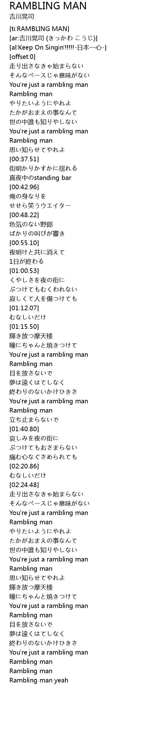 | [01:36.21] | Rambling man |