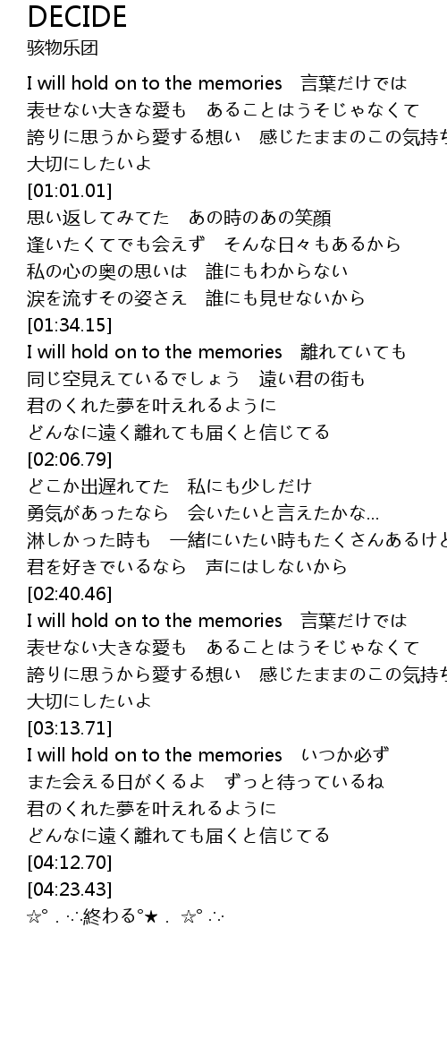 | [02:41.55] | I will hold on to the memories 言葉だけでは |