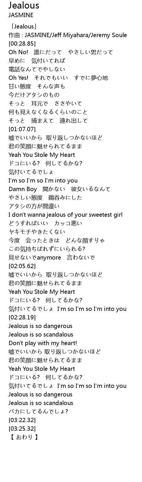 | [01:39.15] | I don' t wanna jealous of your sweetest girl |