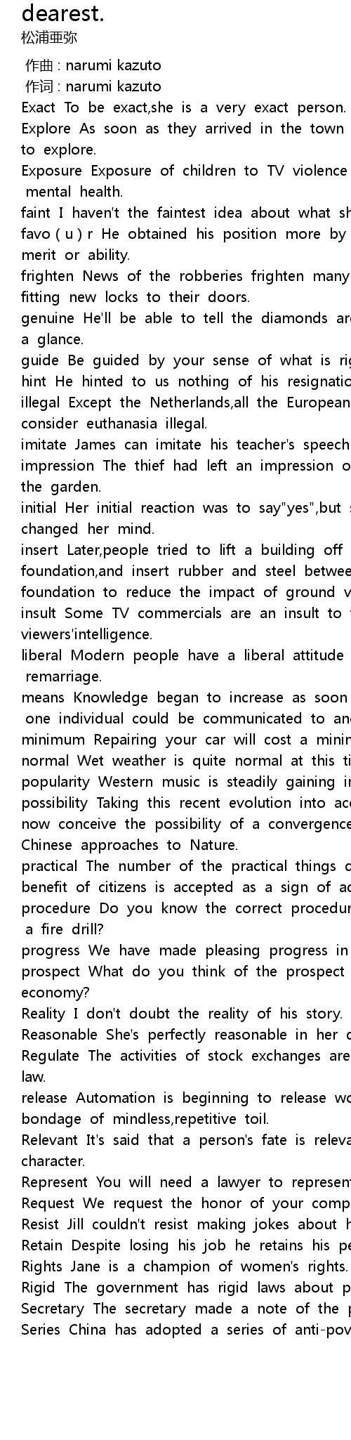 | [00:08.494] | Exact To be exact, she is a very exact person. |