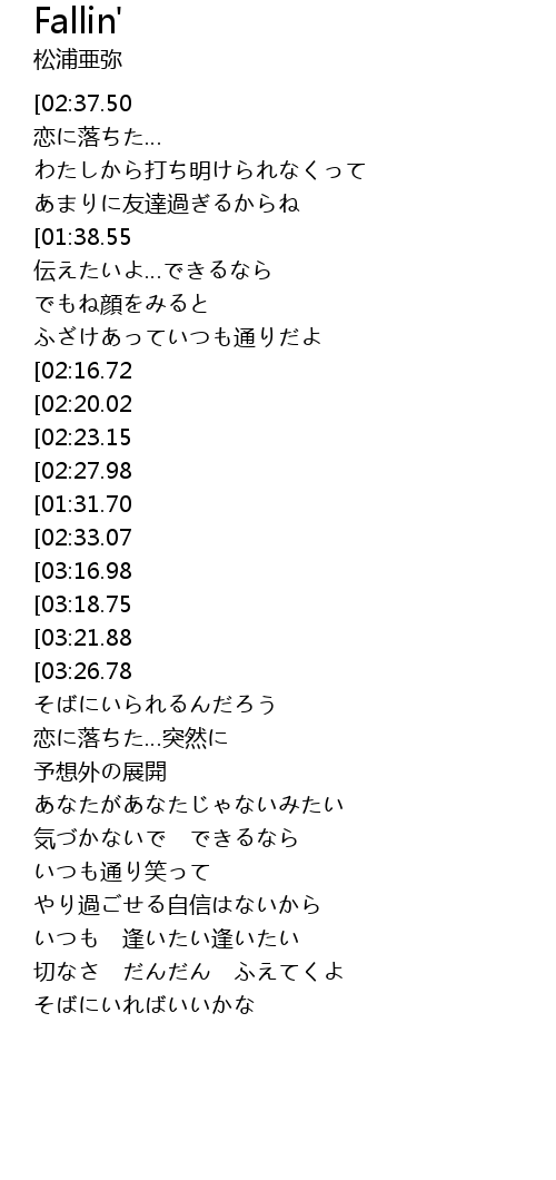 | [00:13.00][02:37.50][03:36.62] | sōng pǔ yà mí Fallin' |