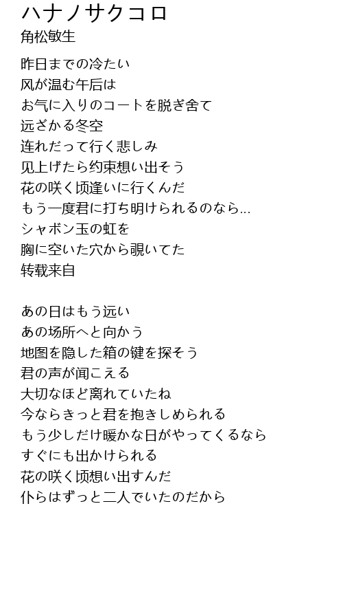 | 歌曲 | ハナノサクコロ |