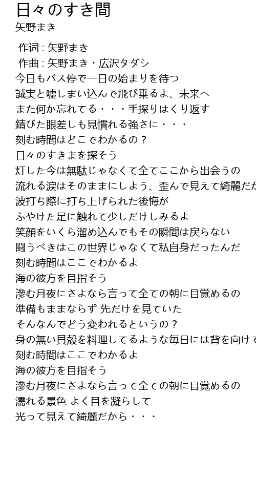 | [00:01.000] | 作曲 : 矢野まき・広沢タダシ |
