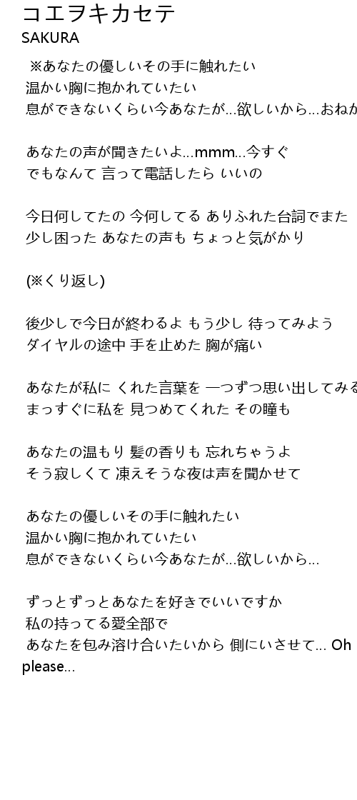 | あなたを包み溶け合いたいから 側にいさせて… Oh baby please… |