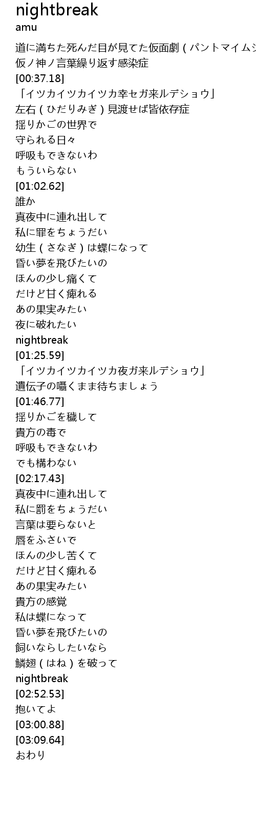 | [01:36.23] | 「イツカイツカイツカ夜ガ来ルデショウ」 |