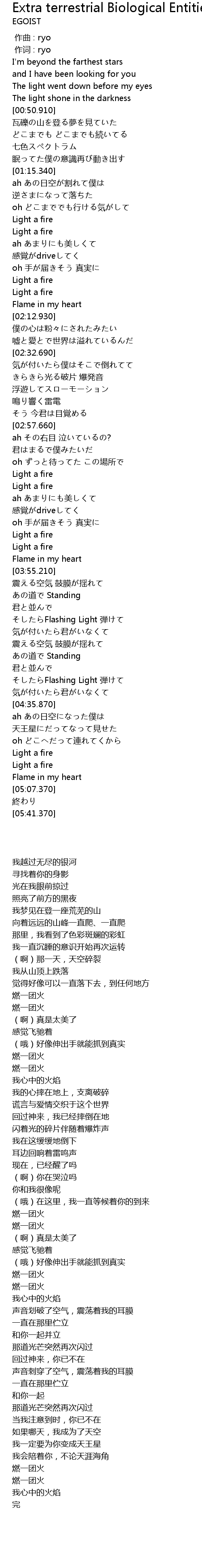 | 歌曲 | Extra terrestrial Biological Entities |