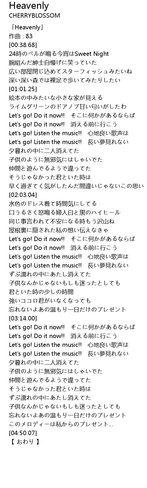 | [00:01.68] | 「Heavenly」 |
