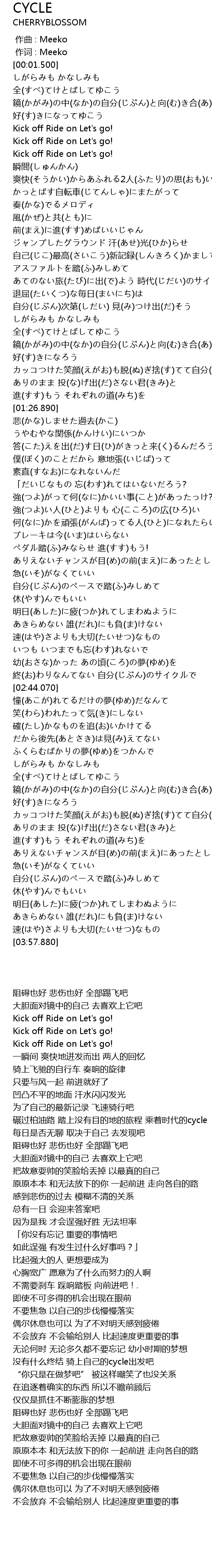 | [02:37.970] | 没有什么终结 骑上自己的cycle出发吧 |