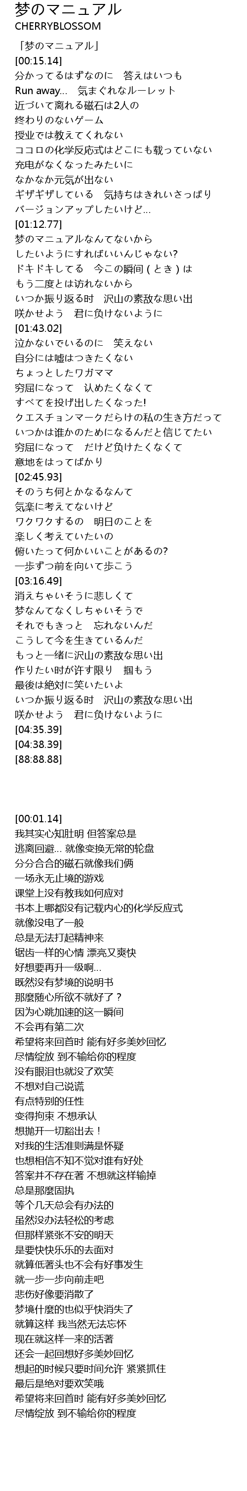 | [04:20.31] | いつか振り返る时 沢山の素敌な思い出 |