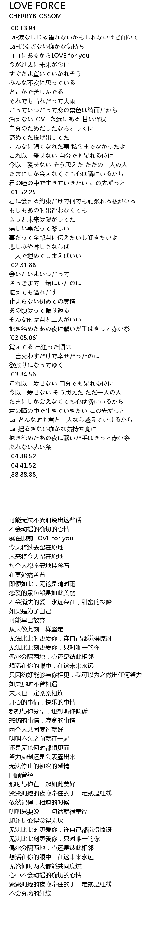 | [04:33.46] | 离れない赤い糸 |