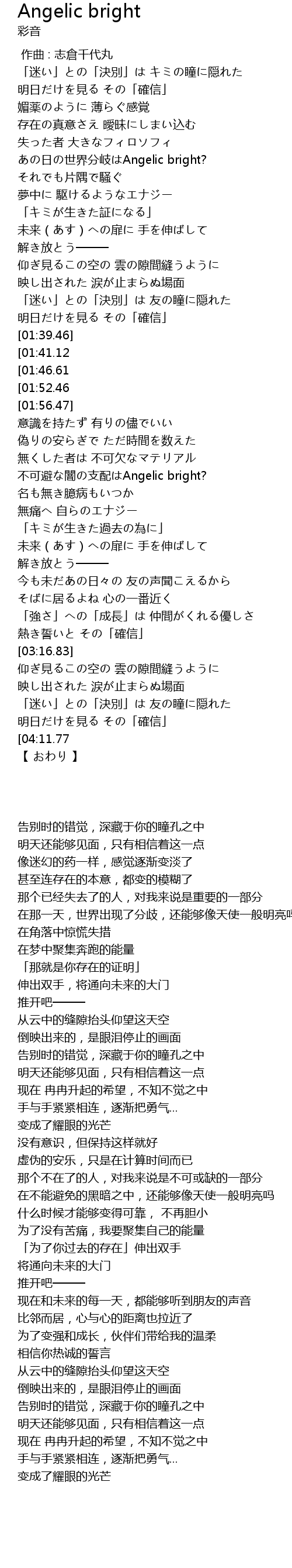 | 歌曲 | Angelic bright |