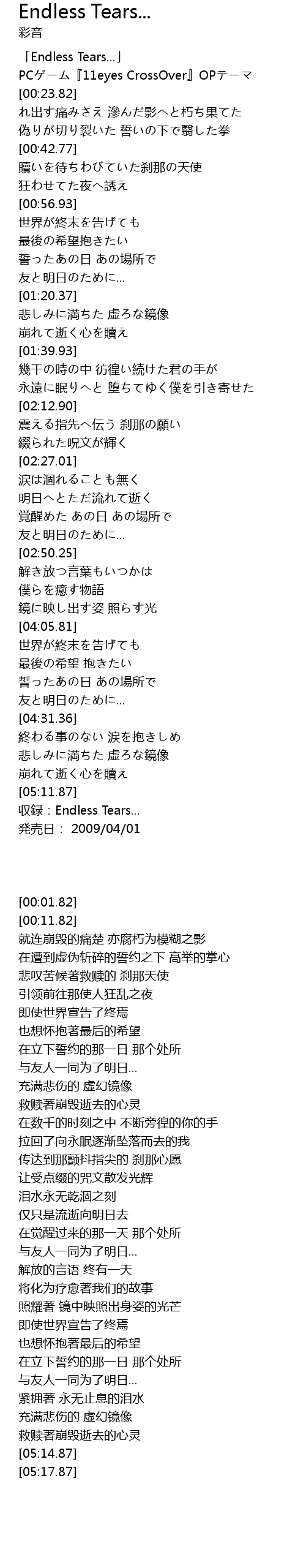 | [00:11.82] | PCゲーム『11eyes CrossOver』OPテーマ |