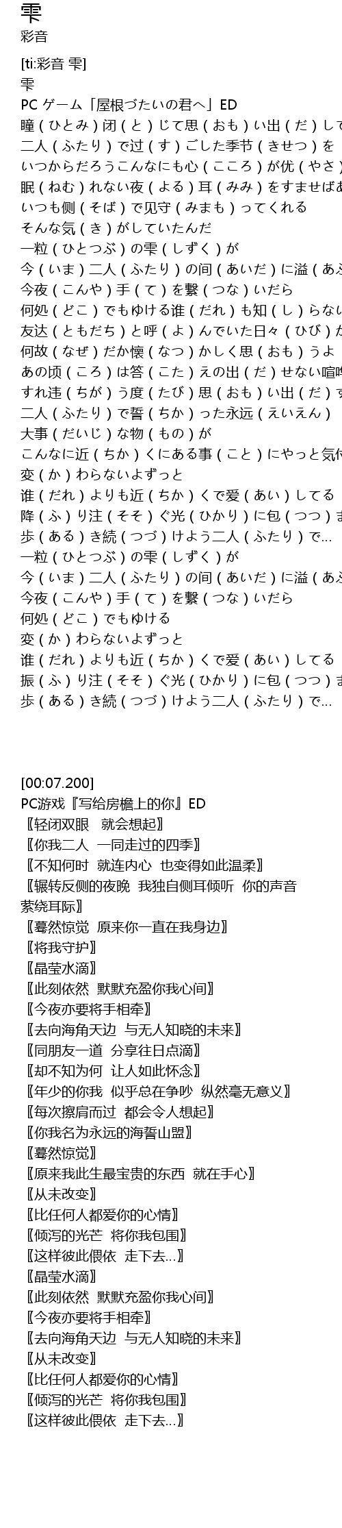 | [00:10.610] | PC游戏『写给房檐上的你』ED |