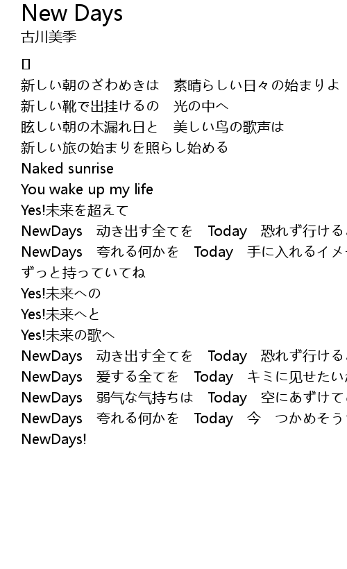 | NewDays 动き出す全てを Today 恐れず行けるよ | |