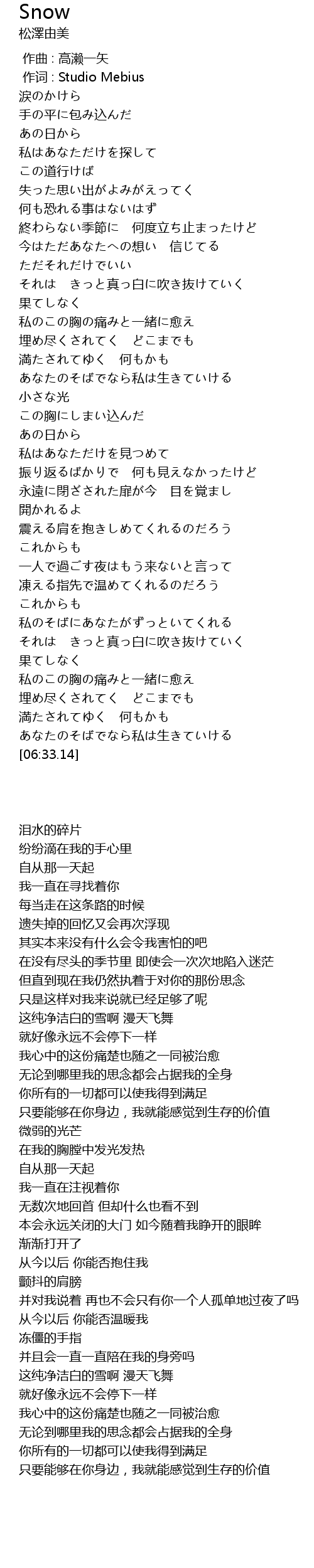 | [02:19.31] | 这纯净洁白的雪啊 漫天飞舞 |