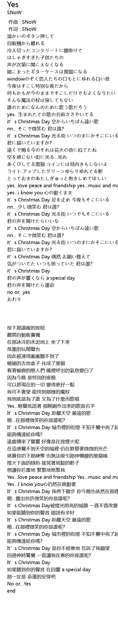 | [02:30.67] | Yes…love peace and friendship Yes…music and magic |