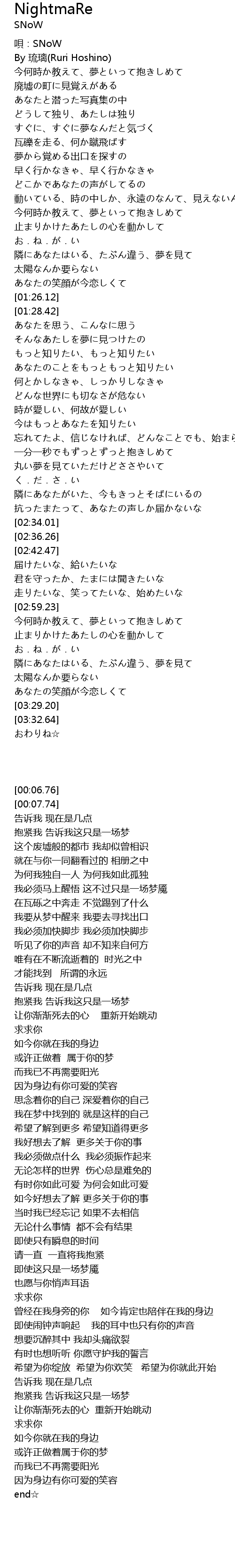 | [00:07.74] | By 琉璃(Ruri Hoshino) |