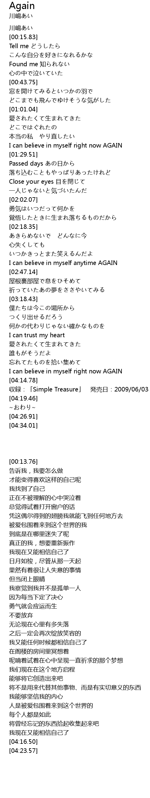 | [02:41.41] | I can believe in myself anytime AGAIN |