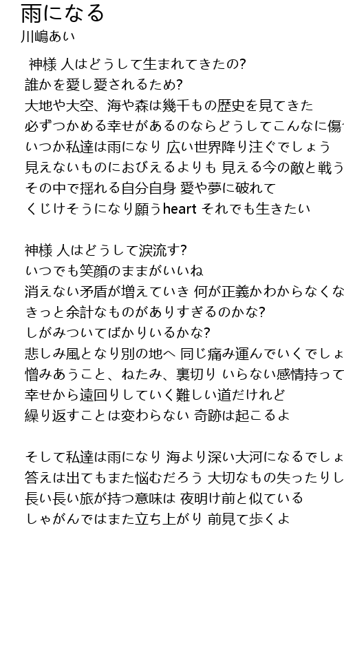 | そして私達は雨になり 海より深い大河になるでしょう | |