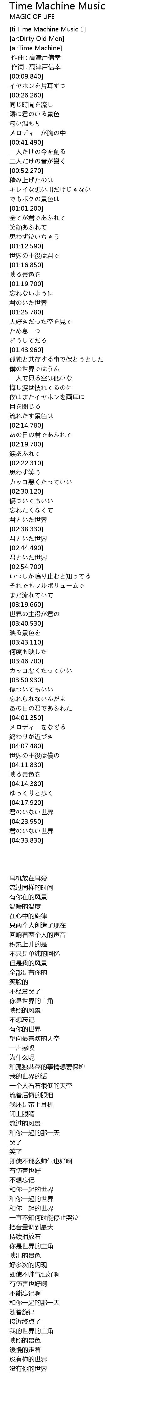 | [04:20.310] | 君のいない世界 |