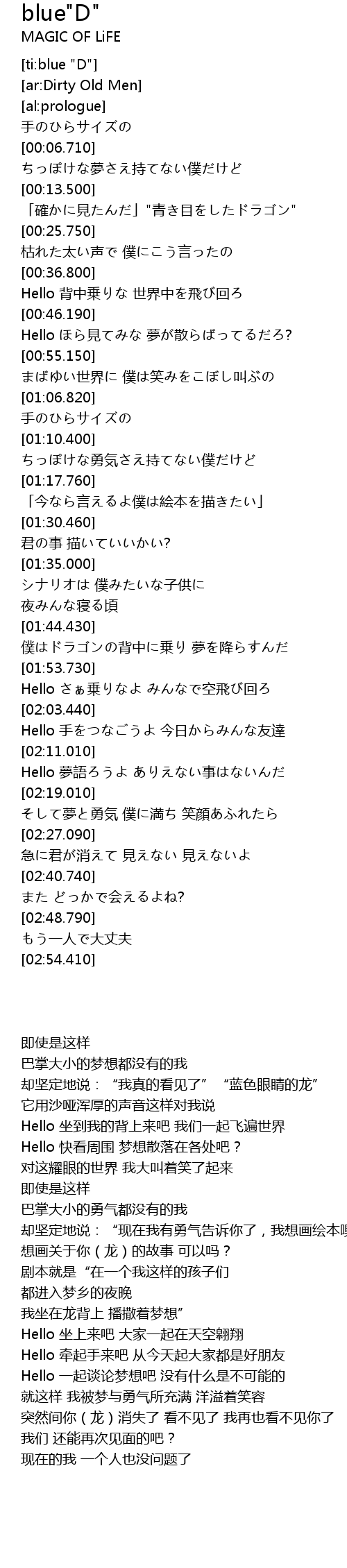 | [01:46.150] | 僕はドラゴンの背中に乗り 夢を降らすんだ |
