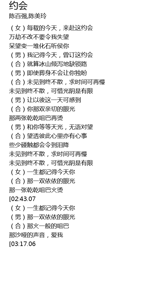 | [00:42.72] | (男)我记得今天,曾订这约会 |