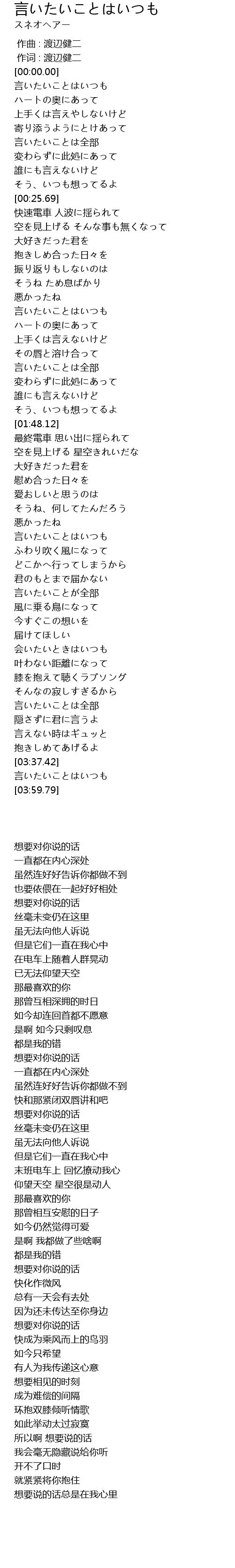 | [03:53.82] | 言いたいことはいつも |