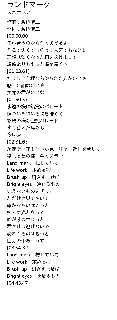 | [03:07.31] | Land mark 標していて |