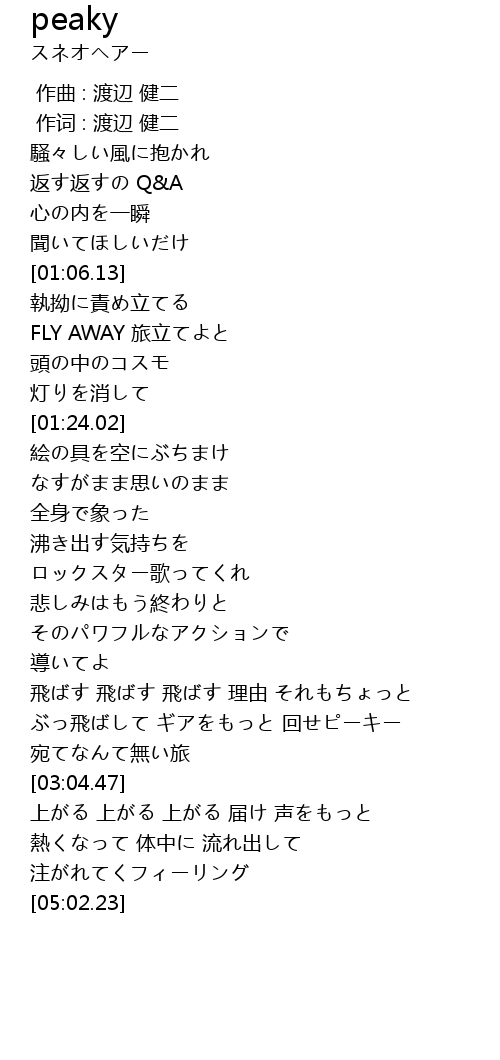 | [02:37.19] | ぶっ飛ばして ギアをもっと 回せピーキー |