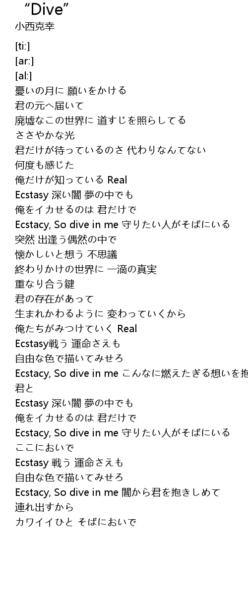 | [03:00.07] | Ecstacy, So dive in me shou ren |