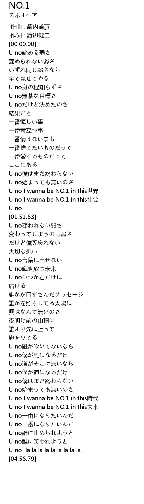 | [03:46.50] | U no I wanna be NO.1 in this時代 |