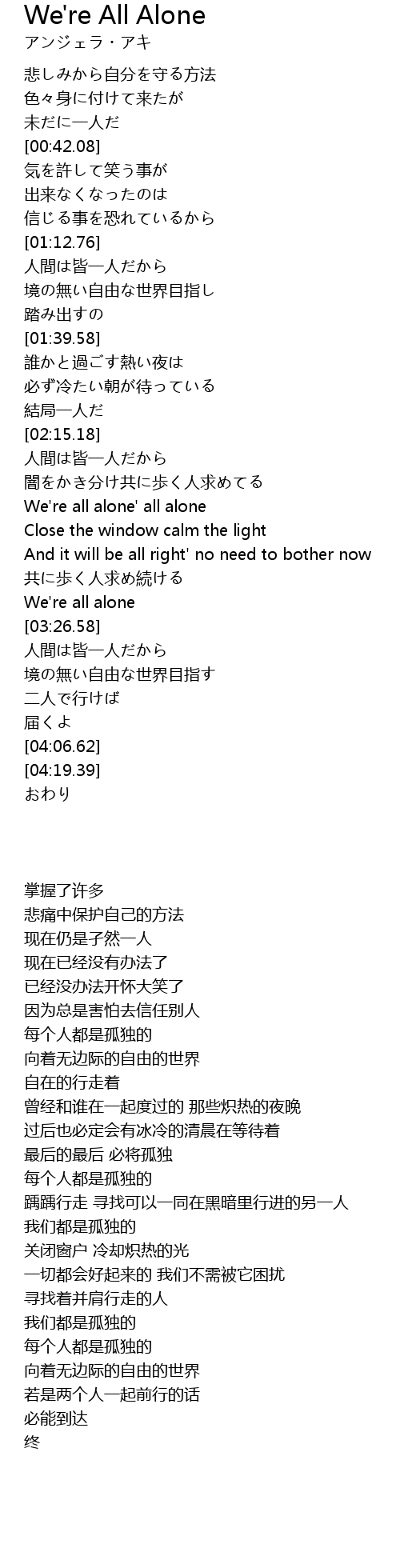 | [03:38.68] | jìng wú zì yóu shì jiè mù zhǐ |