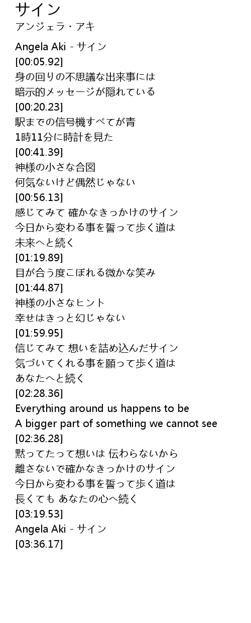 | [00:56.65] | 感じてみて 確かなきっかけのサイン |