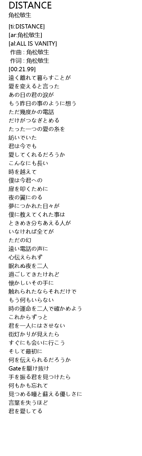 | [04:51.39] | 見つめる瞳と蘇える優しさに |