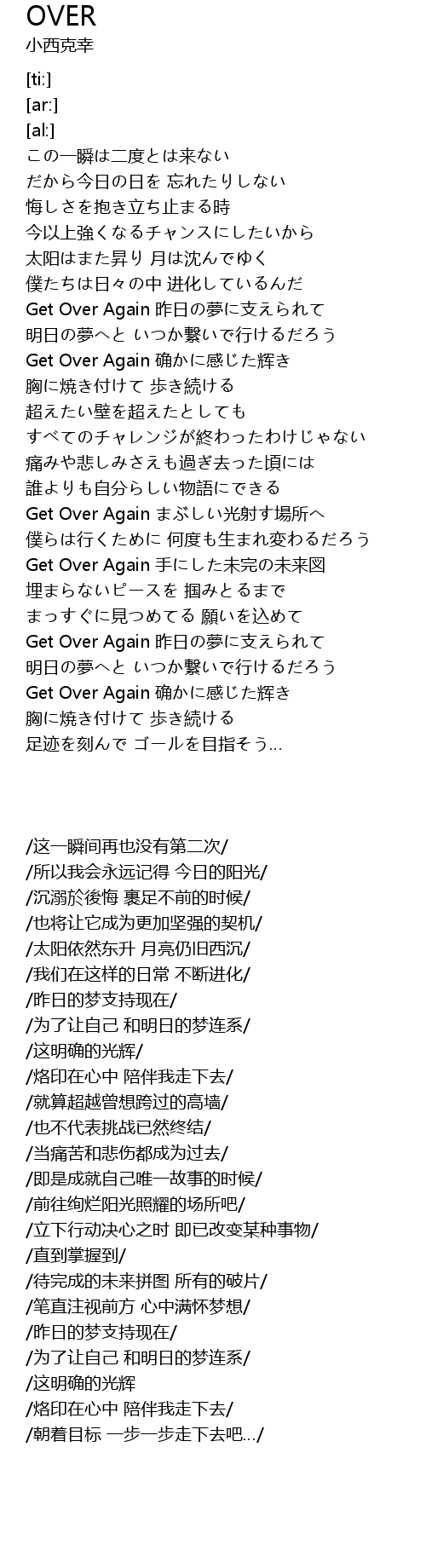 | [01:24.83] | Get Over Again 昨日の夢に支えられて |