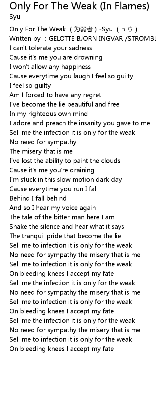 | [00:00.00] | Only For The Weak (为弱者)-Syu (ュウ) |