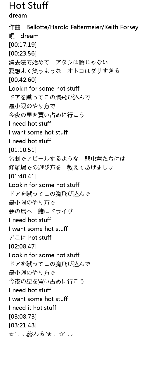 | [00:07.02] | 作曲 Bellotte/Harold Faltermeier/Keith Forsey |
