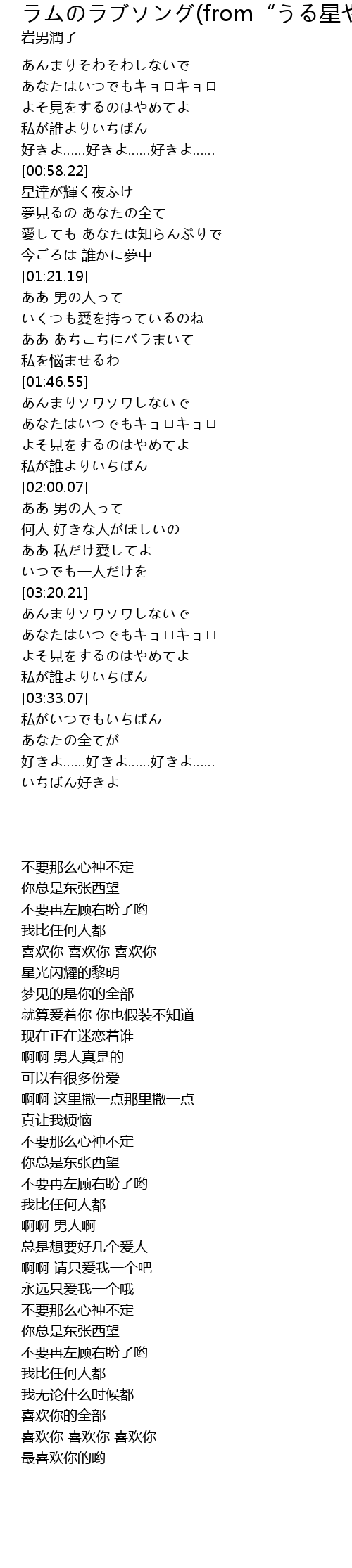 ラムのラブソング(from“うる星やつら”) 歌词