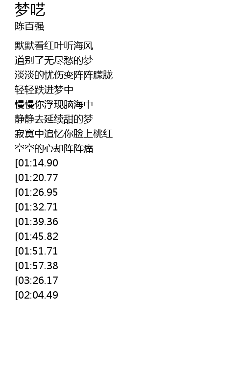 | [03:04.03][01:45.82] | 剩下我呆望云飘动 |